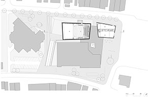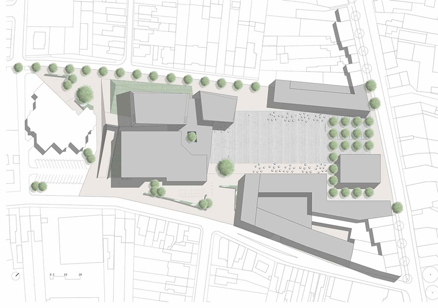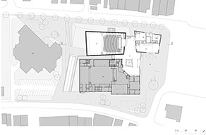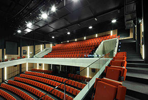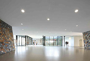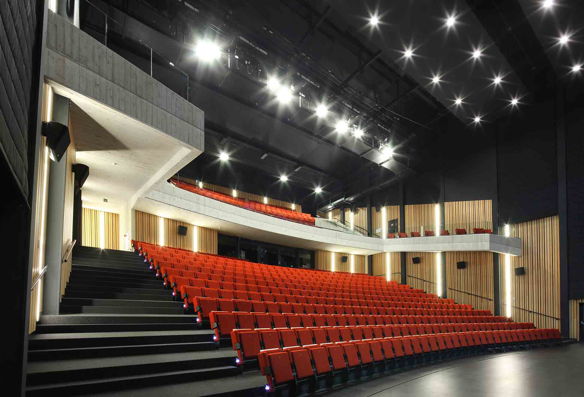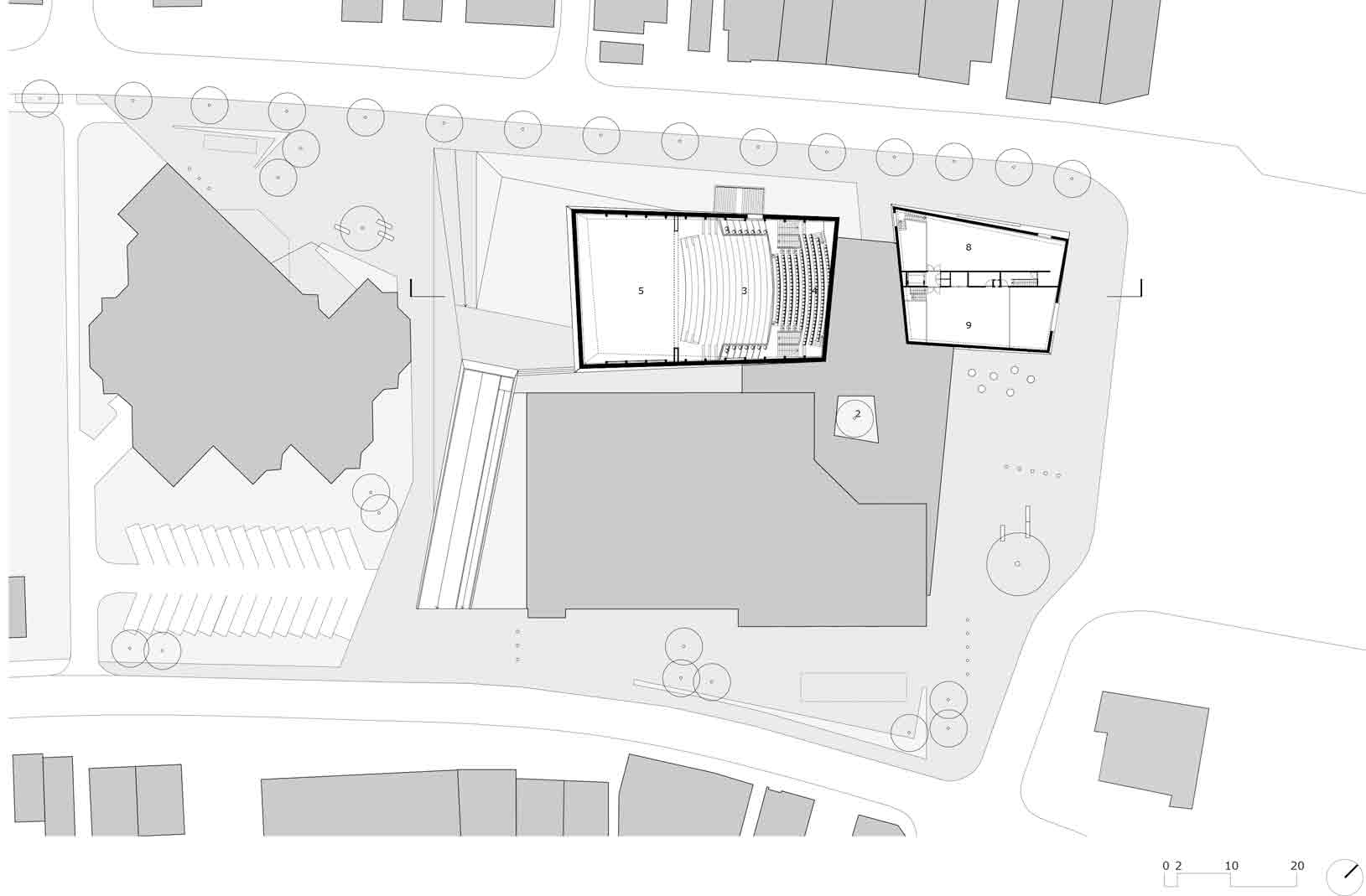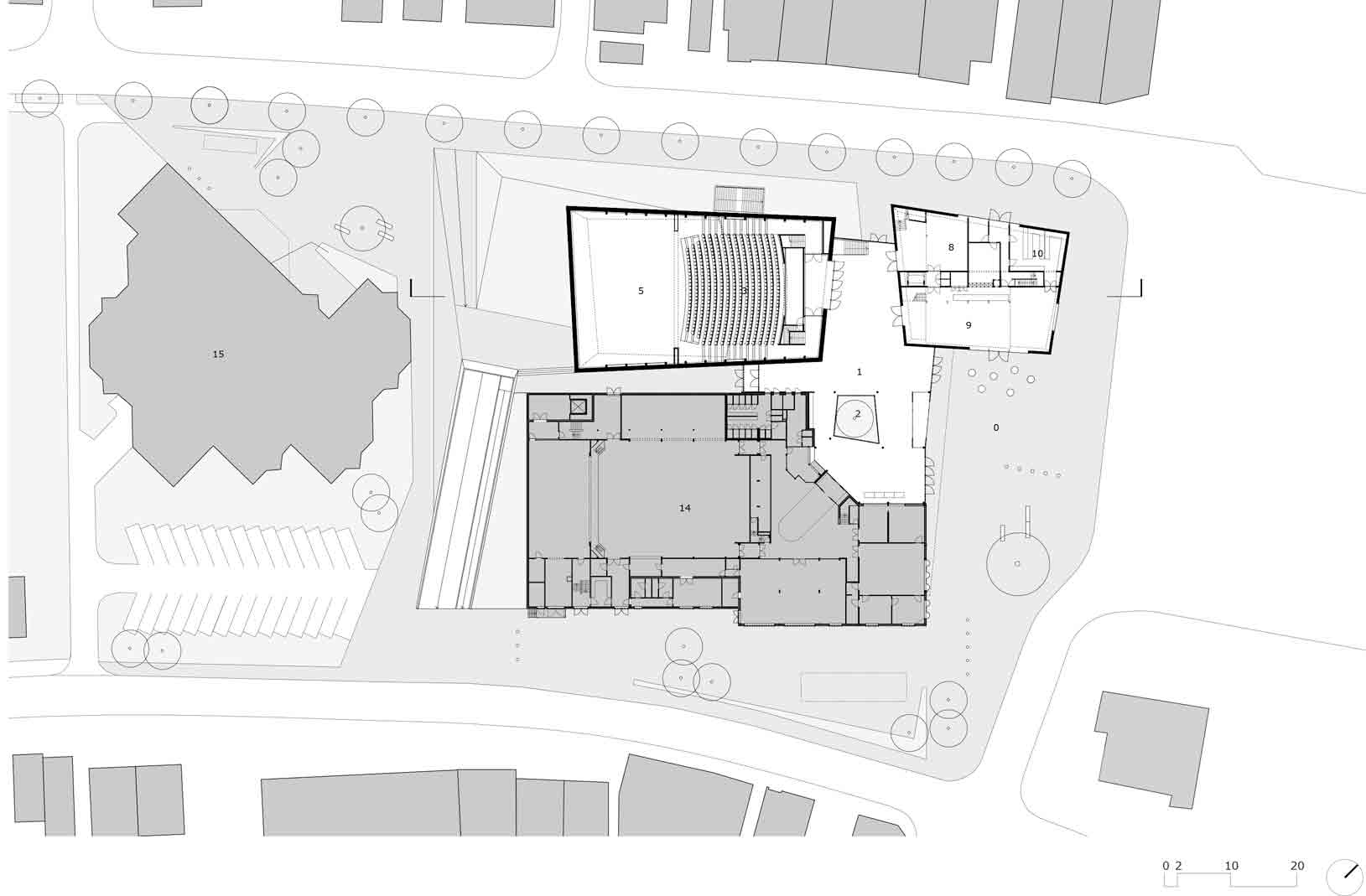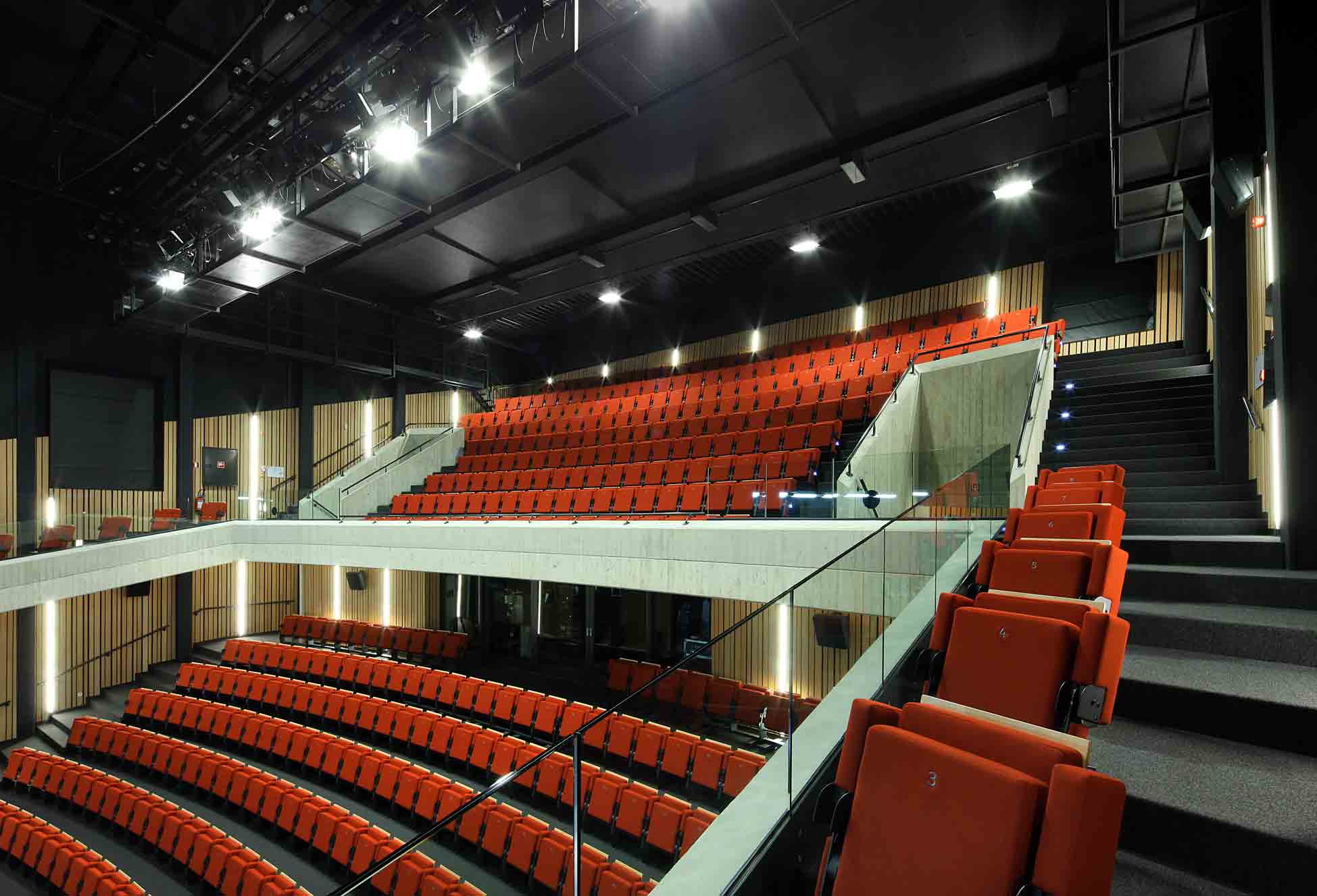 (700 p.), expo- en cafetariaruimte, centrale foyer, polyvalente ruimte, repetieruimtes.