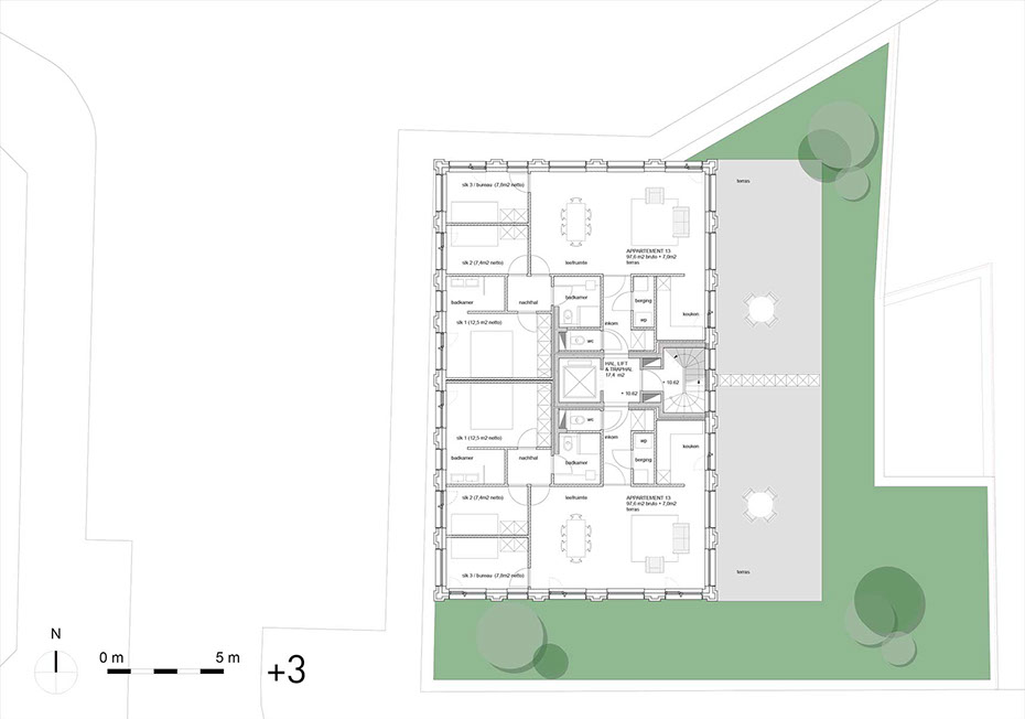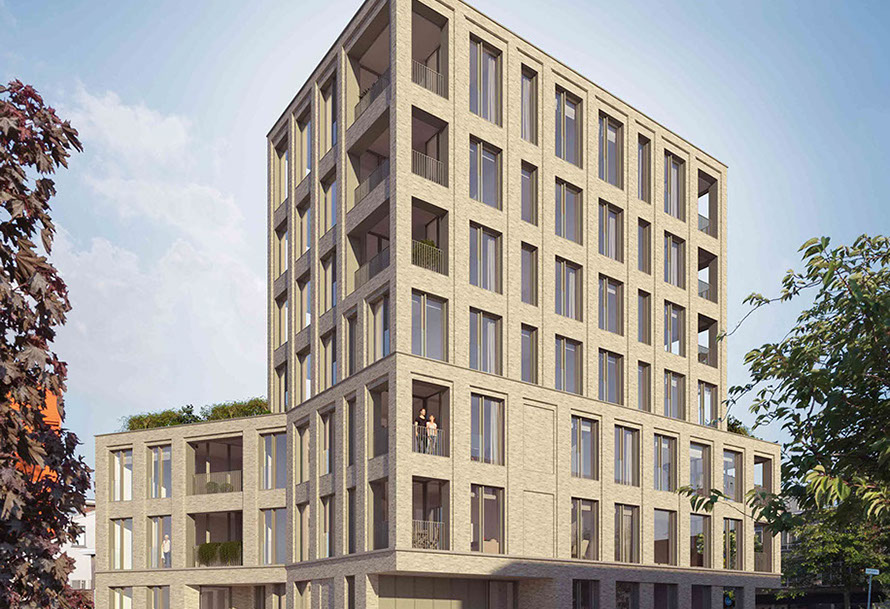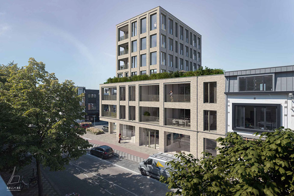 Nieuwbouw van 18 appartementen, 4 commerciƫle ruimtes & ondergrondse parkeergarage.