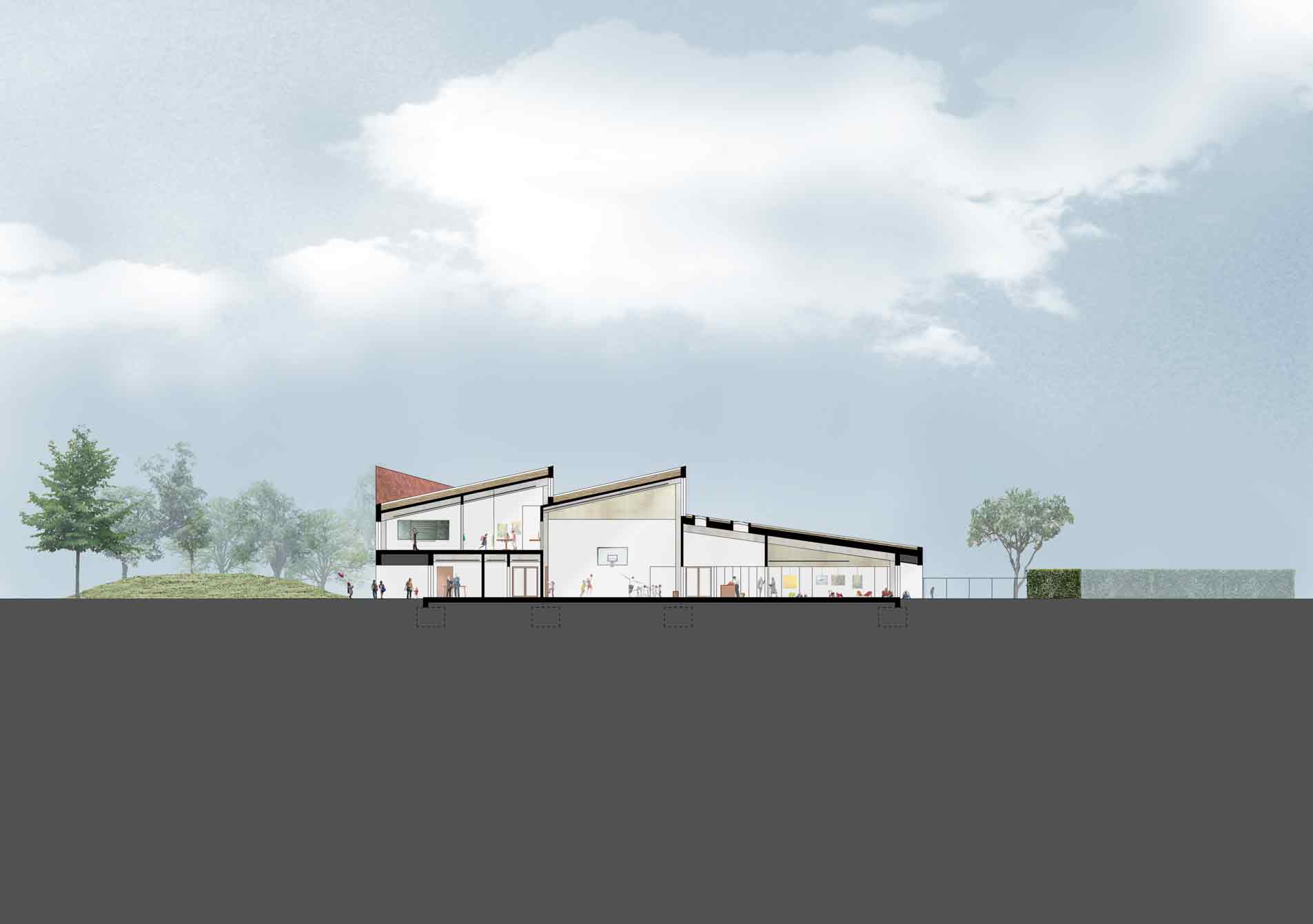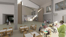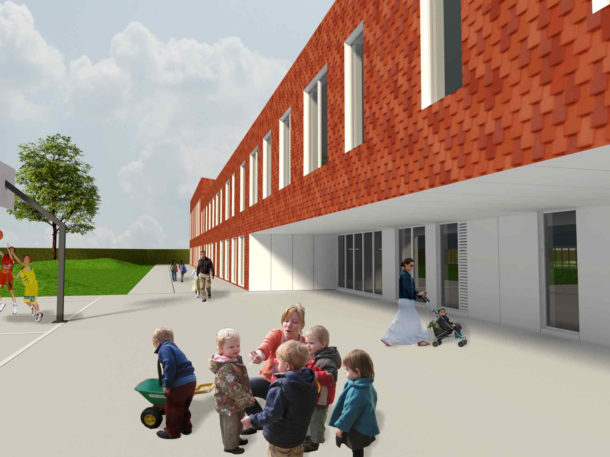 Nieuwbouw basis- en kleuterschool & kinderdagverblijf met 4 leefgroepen.